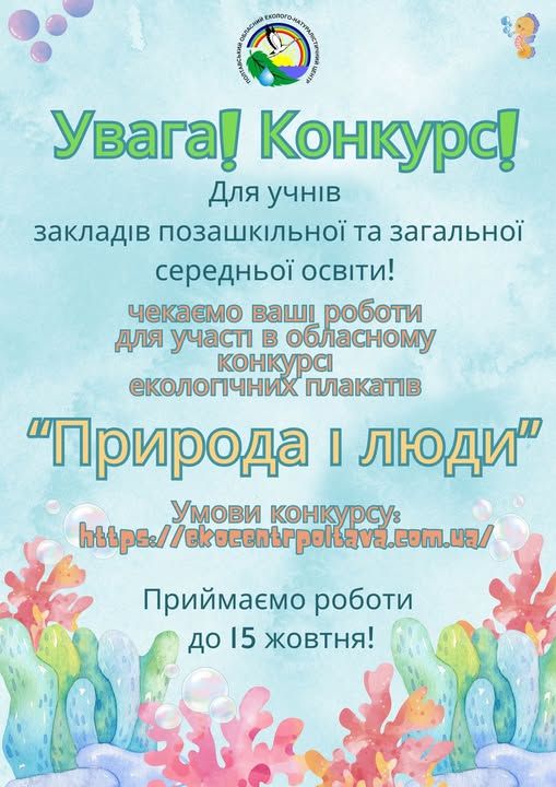 до 15 жовтня Долучайтесь! 🌎👫 Більше про конкурс: 👇 https://ekocentrpoltava.com.ua/.../%D0%9F%D0%9E%D0%9B%D0...