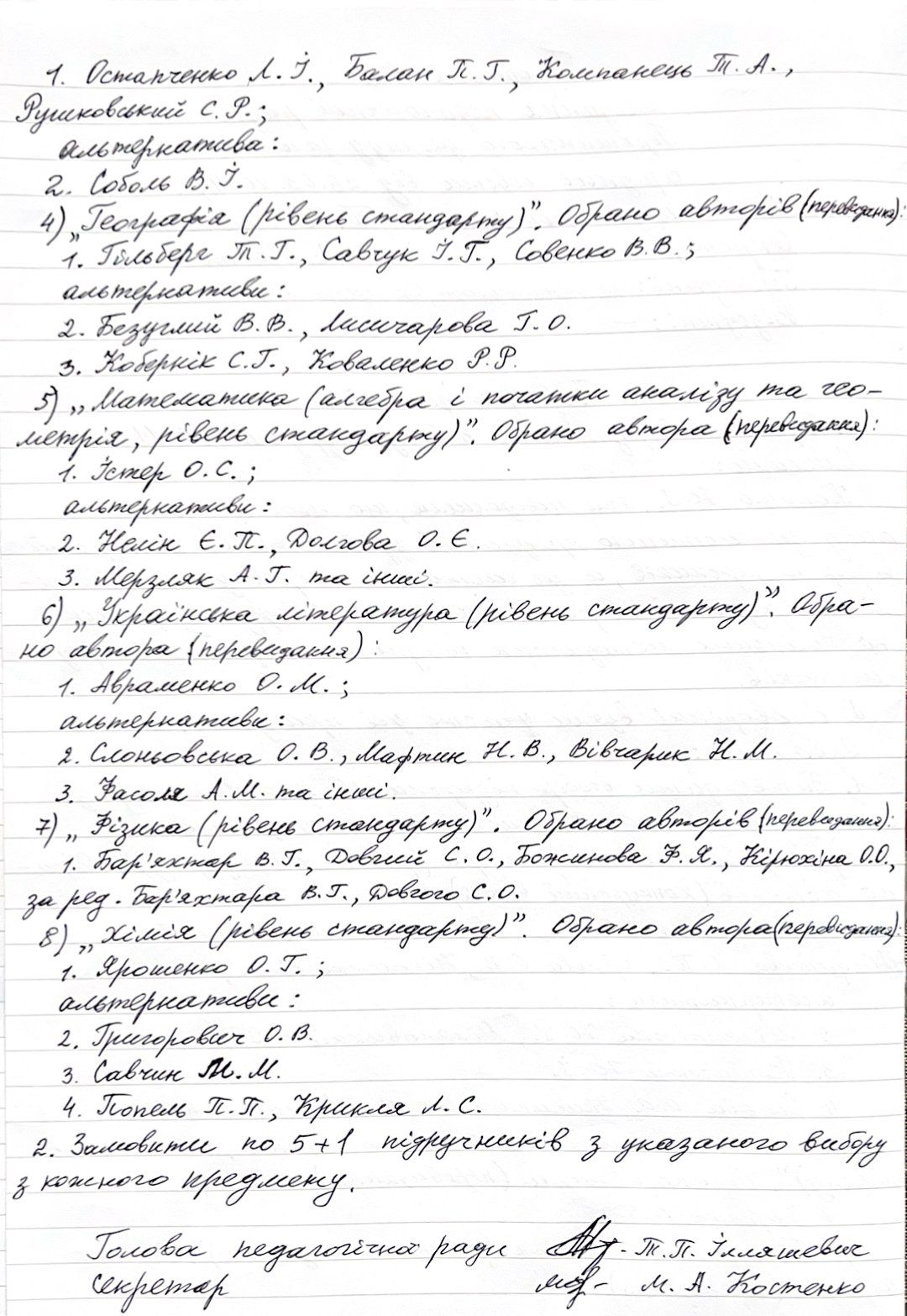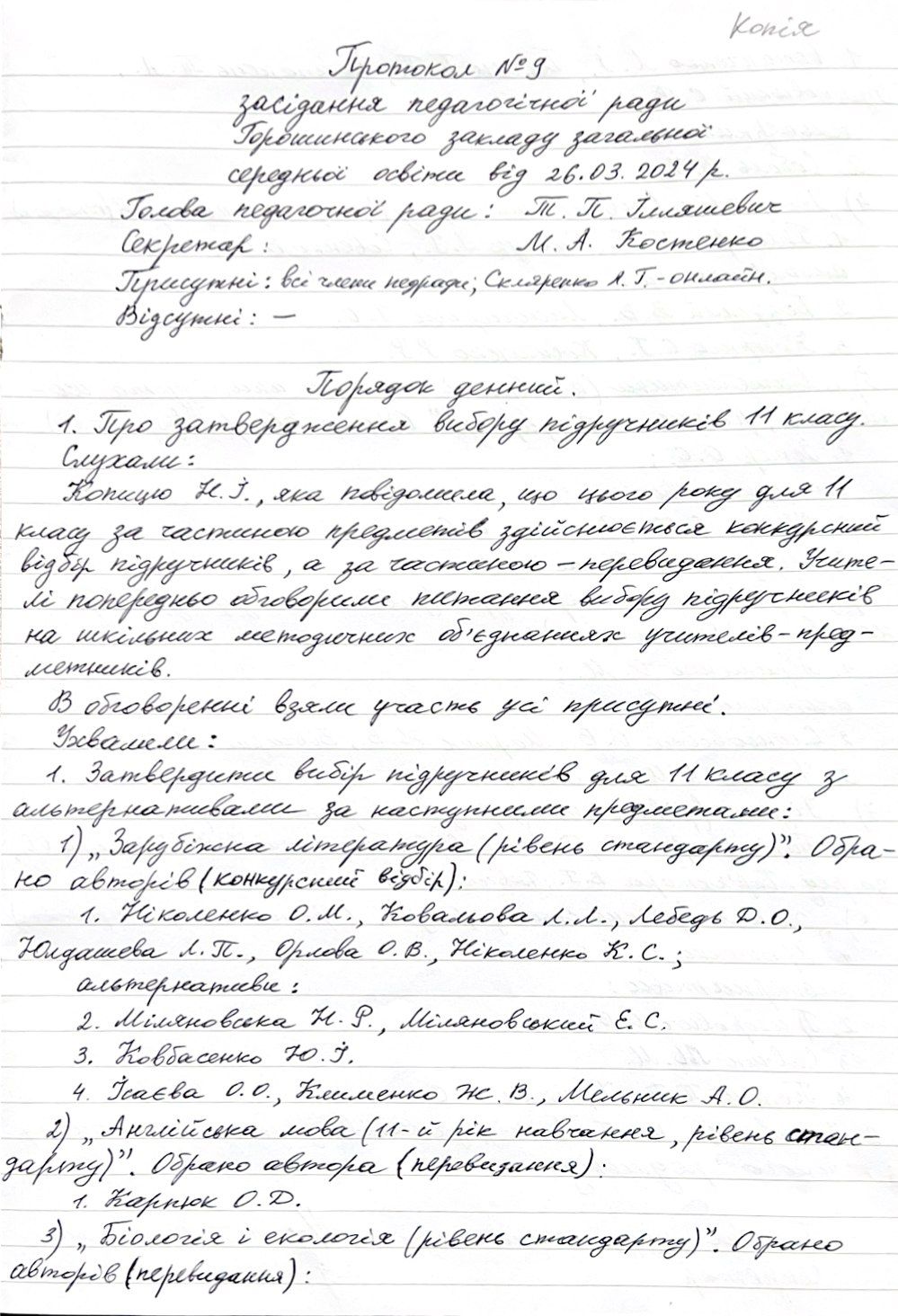 Протокол педагогічної ради № 9 "Про затвердження вибору підручників для 11 класу"